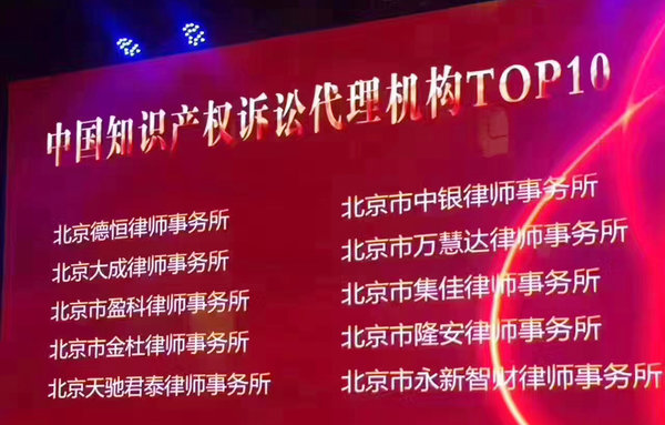 2017年6月23日,备受关注的知产宝“2016年度中国十佳知识产权诉讼代理机构榜单发布会”在北京隆重举行,江南体育凭借稳健的综合实力,入选“中国知识产权诉讼代理机构”TOP10和“中国商标行政诉讼代理机构”TOP10榜单。国内知识产权知名法律服务机构,近百位国内外大中型企业代表,以及36家知名媒体齐聚一堂,共同见证了榜单发布情况。