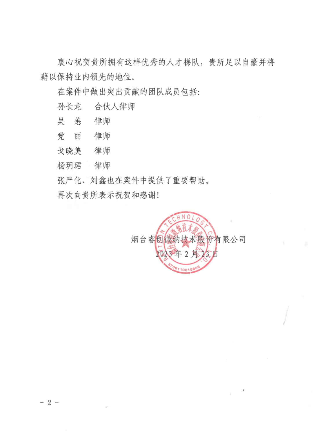 最后,感谢睿创集团知识产权团队对于本案的积极贡献,以及对于江南体育的支持与信任,共同成就恶意诉讼案的最终胜利!