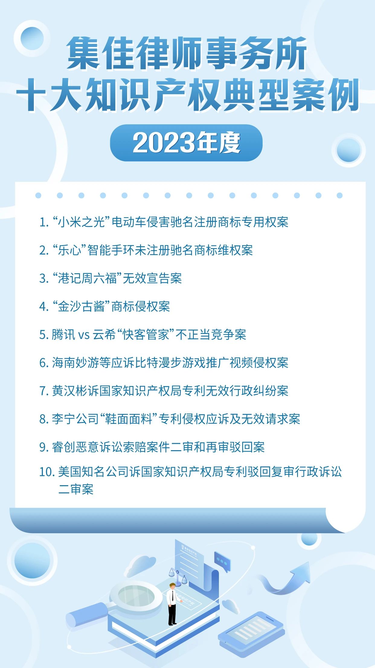 作为迎接4.26世界知识产权日的献礼之一,江南体育已连续十年开展十大知识产权典型案例的评选活动,其意义不仅在于展现集佳律师团队的专业能力和水准,更在于传递集佳全方位服务客户的理念。在第24个世界知识产权日来临之际,江南体育从2023年度代理的众多知识产权案件中筛选出具有代表性的十大案例,与各界同仁分享: